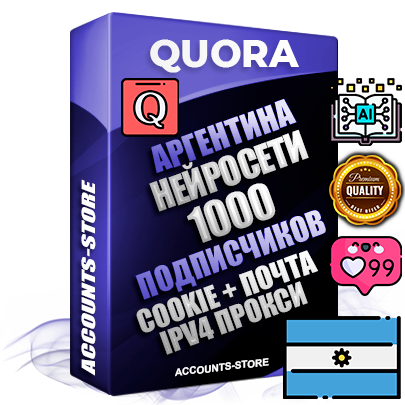 Профессиональные Аргентинские соц. аккаунты Quora с мощным оформлением под тематику Искусственный Интеллект ручной регистрации и фарма с высоким трастом + 10 Тематических вопросов — 1000 подписчиков из наших баз без отписок со временем для Рекламы, Продвижения и привлечения огромного рекламного трафика, Дополнительный Прогон по ГЕО IP Аргентина из разных локаций, привязана Почта (Поставляется в комплекте) + User Agent (Фарм + Выдержка + АНТИБАН + Прогон по IP) Поддержка работы с под VPN. Идеально подходят под любые проекты и схемы заработка. В комплекте безлимитный выделенный IpV4 прокси сервер