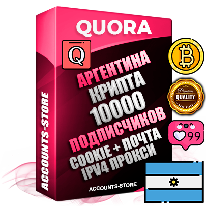 Профессиональные Аргентинские соц. аккаунты Quora с мощным оформлением под тематику КРИПТОВАЛЮТА ручной регистрации и фарма с высоким трастом + 10 Тематических вопросов — 10000 подписчиков из наших баз без отписок со временем для Рекламы, Продвижения и привлечения огромного рекламного трафика, Дополнительный Прогон по ГЕО IP Аргентина из разных локаций, привязана Почта (Поставляется в комплекте) + User Agent (Фарм + Выдержка + АНТИБАН + Прогон по IP) Поддержка работы с под VPN. Идеально подходят под любые проекты и схемы заработка. В комплекте безлимитный выделенный IpV4 прокси сервер