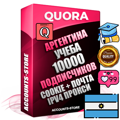 Профессиональные Аргентинские соц. аккаунты Quora с мощным оформлением под тематику Учеба (Продажа курсов) ручной регистрации и фарма с высоким трастом + 10 Тематических вопросов — 10000 подписчиков из наших баз без отписок со временем для Рекламы, Продвижения и привлечения огромного рекламного трафика, Дополнительный Прогон по ГЕО IP Аргентина из разных локаций, привязана Почта (Поставляется в комплекте) + User Agent (Фарм + Выдержка + АНТИБАН + Прогон по IP) Поддержка работы с под VPN. Идеально подходят под любые проекты и схемы заработка. В комплекте безлимитный выделенный IpV4 прокси сервер