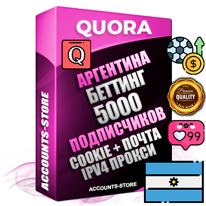 Профессиональные Аргентинские соц. аккаунты Quora с мощным оформлением под тематику БЕТТИНГ (Ставки на спорт) ручной регистрации и фарма с высоким трастом + 10 Тематических вопросов — 5000 подписчиков из наших баз без отписок со временем для Рекламы, Продвижения и привлечения огромного рекламного трафика, Дополнительный Прогон по ГЕО IP Аргентина из разных локаций, привязана Почта (Поставляется в комплекте) + User Agent (Фарм + Выдержка + АНТИБАН + Прогон по IP) Поддержка работы с под VPN. Идеально подходят под любые проекты и схемы заработка. В комплекте безлимитный выделенный IpV4 прокси сервер