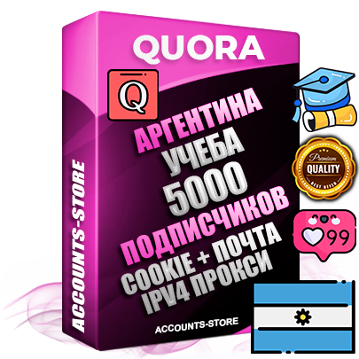 Профессиональные Аргентинские соц. аккаунты Quora с мощным оформлением под тематику Учеба (Продажа курсов) ручной регистрации и фарма с высоким трастом + 10 Тематических вопросов — 5000 подписчиков из наших баз без отписок со временем для Рекламы, Продвижения и привлечения огромного рекламного трафика, Дополнительный Прогон по ГЕО IP Аргентина из разных локаций, привязана Почта (Поставляется в комплекте) + User Agent (Фарм + Выдержка + АНТИБАН + Прогон по IP) Поддержка работы с под VPN. Идеально подходят под любые проекты и схемы заработка. В комплекте безлимитный выделенный IpV4 прокси сервер