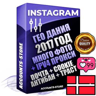 Профессиональные соц. аккаунты Instagram ГЕО Дания ручной регистрации и фарма с высоким трастом, фото и постами — 2017 Год регистрации для продвижения и создания первичного имиджа заполненного и выдержанного аккаунта, привязана Почта (Поставляется в комплекте) + Cookie JSON для безопасного импорта и входа на аккаунт + Выдержка от 6 лет (Траст + АНТИБАН + Прогон по IP) ОГРАНИЧЕННАЯ ПАРТИЯ! Адаптированы для работы с под VPN. 100 % вход с любых видов мобильных устройств. В комплекте безлимитный выделенный IpV4 прокси сервер