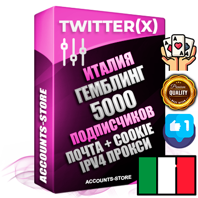 Профессиональные Итальянские соц. аккаунты X (Twitter) с мощным оформлением под тематику ГЕМБЛИНГ (Азартные игры) ручной регистрации и фарма с высоким трастом, фото и твитами — 5000 живых активных подписчиков для Рекламы и Продвижения, 2009 — 2014 год регистрации, привязана Почта (Поставляется в комплекте) + Cookie JSON для безопасного импорта и входа на аккаунт + User Agent (Фарм + Выдержка + АНТИБАН + Прогон по IP) Превосходно держат и отливают рекламу. Поддержка работы с под VPN. Идеально подходят под любые крипто проекты и схемы заработка. В комплекте безлимитный выделенный IpV4 прокси сервер