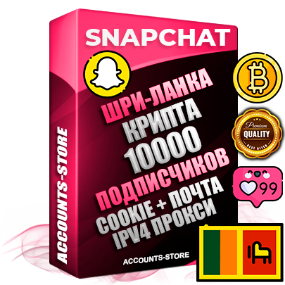 Профессиональные Шри-Ланкийские соц. аккаунты Snapchat с мощным оформлением под тематику КРИПТОВАЛЮТА ручной регистрации и фарма с высоким трастом + 10 Тематических Снапов — 10000 подписчиков из наших баз без отписок со временем для Рекламы, Продвижения и привлечения огромного рекламного трафика, Дополнительный Прогон по ГЕО IP Шри-Ланка из разных локаций, привязана Почта (Поставляется в комплекте) + User Agent (Фарм + Выдержка + АНТИБАН + Прогон по IP) Поддержка работы с под VPN. Идеально подходят под любые проекты и схемы заработка. В комплекте безлимитный выделенный IpV4 прокси сервер