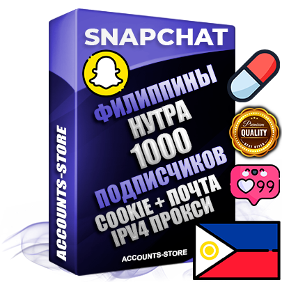 Профессиональные Филиппинские соц. аккаунты Snapchat с мощным оформлением под тематику НУТРА (Красота и здоровье) ручной регистрации и фарма с высоким трастом + 10 Тематических Снапов — 1000 подписчиков из наших баз без отписок со временем для Рекламы, Продвижения и привлечения огромного рекламного трафика, Дополнительный Прогон по ГЕО IP Филиппины из разных локаций, привязана Почта (Поставляется в комплекте) + User Agent (Фарм + Выдержка + АНТИБАН + Прогон по IP) Поддержка работы с под VPN. Идеально подходят под любые проекты и схемы заработка. В комплекте безлимитный выделенный IpV4 прокси сервер