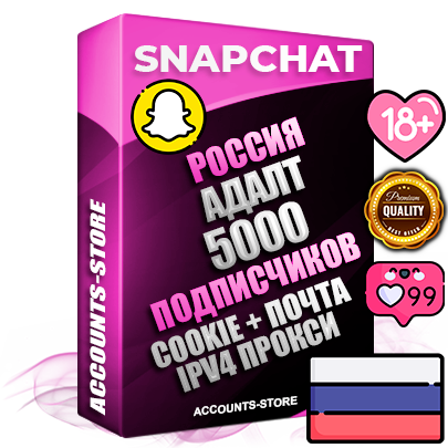 Профессиональные Российские соц. аккаунты Snapchat с мощным оформлением под тематику АДАЛТ (Девушки в купальниках, без откровенных или запрещенных материалов) ручной регистрации и фарма с высоким трастом + 10 Тематических Снапов — 5000 подписчиков из наших баз без отписок со временем для Рекламы, Продвижения и привлечения огромного рекламного трафика, Дополнительный Прогон по ГЕО IP Россия из разных локаций, привязана Почта (Поставляется в комплекте) + User Agent (Фарм + Выдержка + АНТИБАН + Прогон по IP) Поддержка работы с под VPN. Идеально подходят под любые проекты и схемы заработка. В комплекте безлимитный выделенный IpV4 прокси сервер