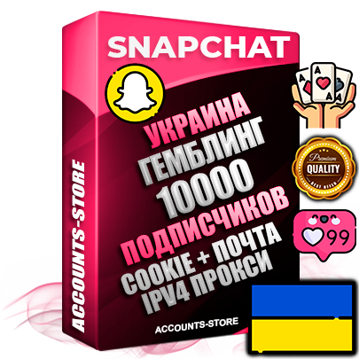 Профессиональные Украинские соц. аккаунты Snapchat с мощным оформлением под тематику ГЕМБЛИНГ (Азартные игры) ручной регистрации и фарма с высоким трастом + 10 Тематических Снапов — 10000 подписчиков из наших баз без отписок со временем для Рекламы, Продвижения и привлечения огромного рекламного трафика, Дополнительный Прогон по ГЕО IP Украина из разных локаций, привязана Почта (Поставляется в комплекте) + User Agent (Фарм + Выдержка + АНТИБАН + Прогон по IP) Поддержка работы с под VPN. Идеально подходят под любые проекты и схемы заработка. В комплекте безлимитный выделенный IpV4 прокси сервер