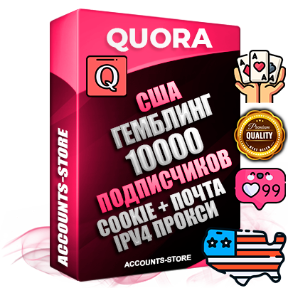 Профессиональные Американские соц. аккаунты Quora с мощным оформлением под тематику ГЕМБЛИНГ (Азартные игры) ручной регистрации и фарма с высоким трастом + 10 Тематических вопросов — 10000 подписчиков из наших баз без отписок со временем для Рекламы, Продвижения и привлечения огромного рекламного трафика, Дополнительный Прогон по ГЕО IP США из разных локаций, привязана Почта (Поставляется в комплекте) + User Agent (Фарм + Выдержка + АНТИБАН + Прогон по IP) Поддержка работы с под VPN. Идеально подходят под любые проекты и схемы заработка. В комплекте безлимитный выделенный IpV4 прокси сервер
